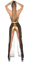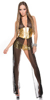 Gold-schwarzes Gogo-Set bestehend aus goldener Hotpants und Miederkleid aus schwarzem Tüll und Reißverschluss. Einheitsgröße, passend ca. S-L