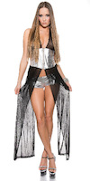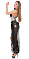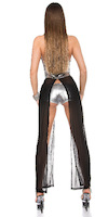 Silber-schwarzes Gogo-Set bestehend aus silberner Hotpants und Miederkleid aus schwarzem Tüll und Reißverschluss. Einheitsgröße, passend ca. S-L