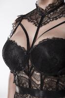 Negligé mit Cut Outs aus transparenter, elastischer Netzspitze mit floralem Muster inklusive passendem Slip.