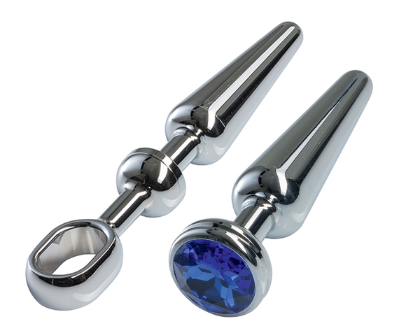 Alu-Plug Set bestehend aus Plug, Stoßgriff und Schmuckstein. Durch die intelligente Schraubkonstruktion kann der Plug mit den verschiedenen Zubehörteilen, die im Set enthalten sind, verwendet werden. Einfach den Stoßgriff oder Schmuckstein aufschrauben. 2 verschiedene Kombinationsmöglichkeiten in einem Set - Alu-Plug mit Stoßgriff oder Alu-Plug mit Schmuckstein.