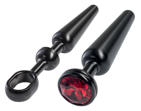 Alu-Plug Set bestehend aus Plug, Stoßgriff und Schmuckstein. Durch die intelligente Schraubkonstruktion kann der Plug mit den verschiedenen Zubehörteilen, die im Set enthalten sind, verwendet werden. Einfach den Stoßgriff oder Schmuckstein aufschrauben. 2 verschiedene Kombinationsmöglichkeiten in einem Set - Alu-Plug mit Stoßgriff oder Alu-Plug mit Schmuckstein.