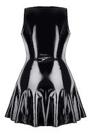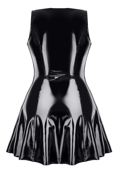 Ein Kleid aus schwarzem, glänzendem PVC. Die speziell entwickelte Konstruktion betont wunderschön die Taille und behält gleichzeitig die Trapezform im unteren Teil bei. Vorne befindet sich ein dunkler Reißverschluss. Sowohl von unten als auch von oben abnehmbar. Wenn man den Reißverschluss von oben öffnet, kommt der Ausschnitt wunderschön zum Vorschein. Optisch perfekt auf den Charakter des Produkts abgestimmt. Das Demoniq-Logo ist auf dem Reißverschluss eingraviert. Neben seinem optischen Reiz ist es auch funktional, da es das An- und Ausziehen des Kleides erleichtert.
