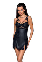 Verführerisches Hemdchen gefertigt aus lederartigem Material sowie zarter Blütenspitze