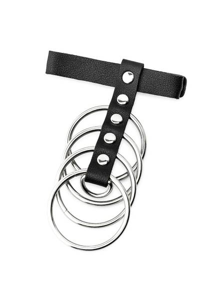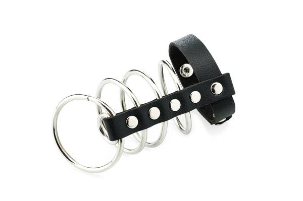 Maße: Gesamtlänge 130 mm, Innen-Ø der 4 Ringe 45 mm; Innen-Ø Lederhodenring 40- 68 mm. Gewicht 67 g.