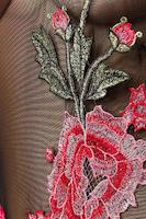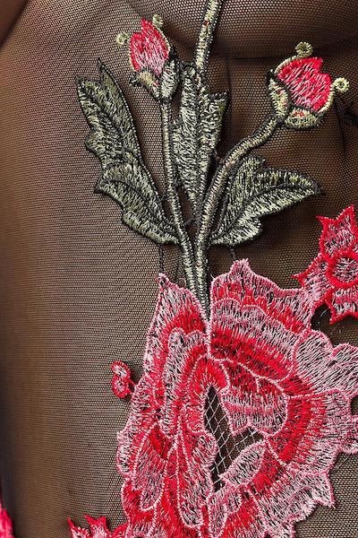 heißer Body aus transparentem Material mit hohem Beinausschnitt verstellbare Mulistraps mit symmetrischen Blumenapplikationen