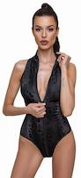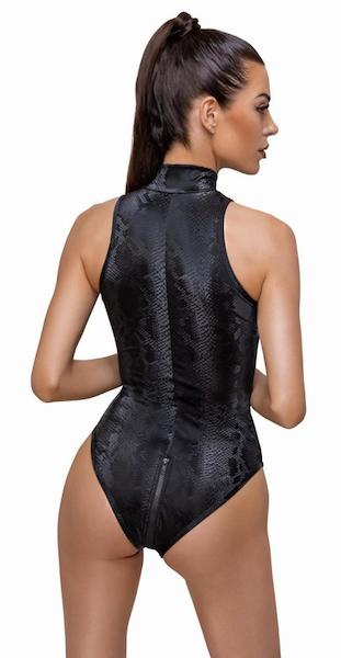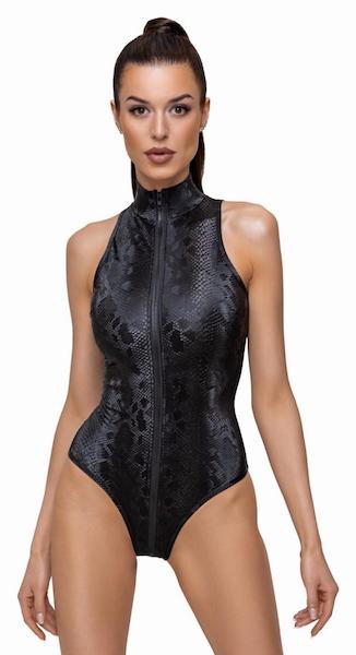 Fühle dich in diesem trendigen Bodysuit in glänzender, matter Schlangenhaut-Optik herausfordernd. Fantastischer Stretch für hervorragende Passform und Komfort. Mit einem praktischen und erotischen Reißverschluss, der vom hohen Hals bis zum Schritt verläuft