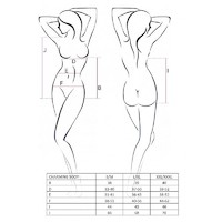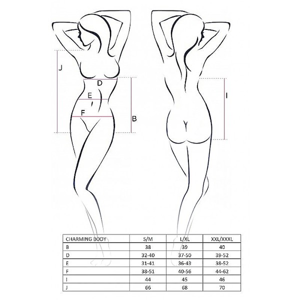 Transparenter Body mit Satineinsätzen und Spitzenträgern. Mit Hakenleiste im Schritt. In zwei Längen verstellbar.