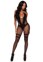 Bodystocking mit blickdichten und transparenten Details. Im Schritt ouvert.