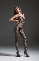 Im Schritt offener Muster-Netz-Catsuit mit eleganten Spaghettiträgern.