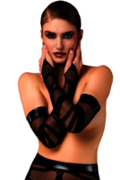 Material: Die Handschuhe aus zartem beflocktem Tüll mit Bondage-inspiriertem Muster bieten ein halbtransparentes, samtiges Finish. Ein weiches Powerwetlook-Band sorgt für sicheren Sitz und einen sanften Kontrast zum filigranen Stoff.