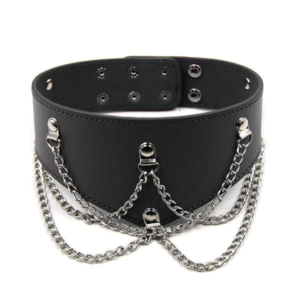 Kunstleder-Halsband mit Ketten aus PVC. Mit Schnalle zu verstellen.