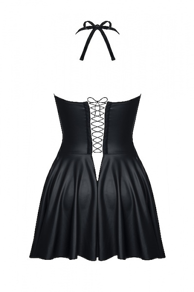 Das Kleid wird hinten im Nacken gebunden und hat auf der Rückseite eine lange, vertikale Schnürung, die ihm einen sexy Look verleiht und gleichzeitig das Anziehen des Kleides erleichtert.