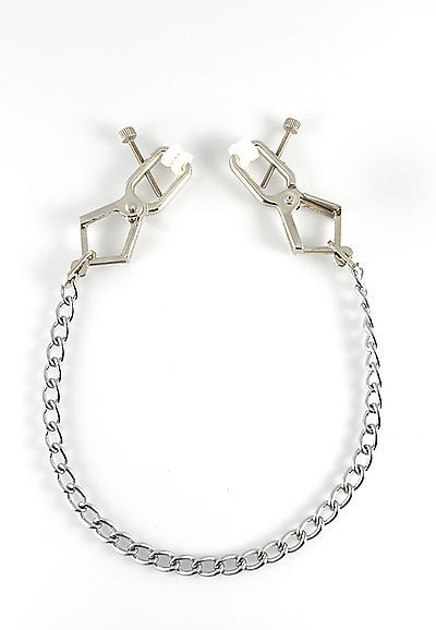 X-Klammern mit Stellschraube und Gummiposter. Mit Kette verbunden.