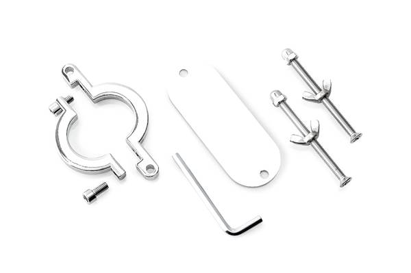 Maße: Innen-Ø 35 mm, Materialstärke 10 mm, Schraubenlänge 79 mm, Metallplatte 40 x 105 mm. Gewicht 245 g.