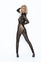 Absolut animalischer Look! Dieser vollständig bedeckende und gleichzeitig durchsichtige Leoparden-Flock Catsuit hat einen Zwei-Wege-Reißverschluss. Bist Du wild genug?