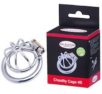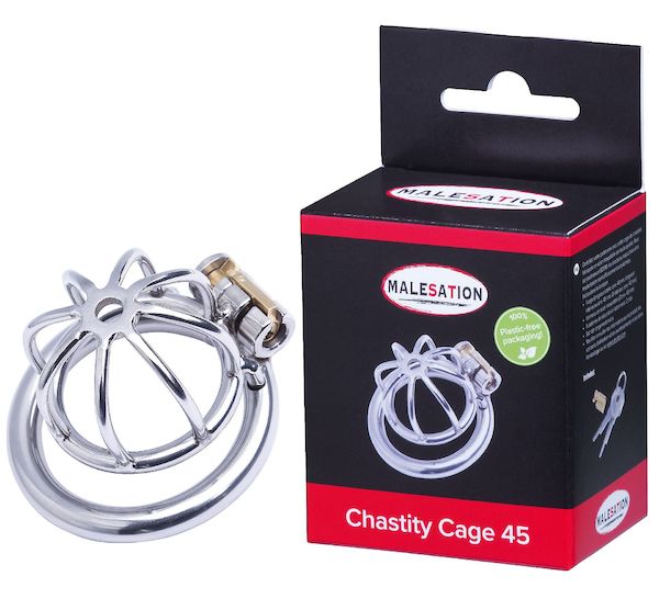 Kontrollieren Sie Ihren Partner mit diesem Keuschheitskäfig, der aus hochwertigem Edelstahl hergestellt ist. Mit diesem BDSM-Sexspielzeug werden männliche Erektionen und Masturbation effektiv verhindert. Im Lieferumfang enthalten sind: • 1 Käfig (Gesamtlänge: ca. 48 mm, Innenlänge: ca. 45 mm, Ø-innen: ca. 40 mm) • 1 Edelstahlring (Ø ca. 45 mm) • 1 Messing-Sicherheitsschloss mit 2 Schlüsseln • Inklusive Aufbewahrungsbeutel