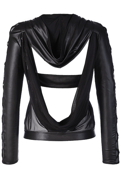 Eleganter Hoody gefertigt aus einem Mix aus Tüll und lederähnlichem Material