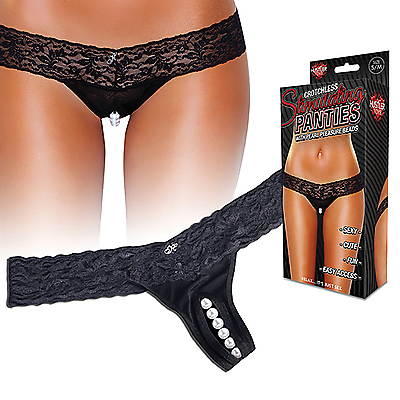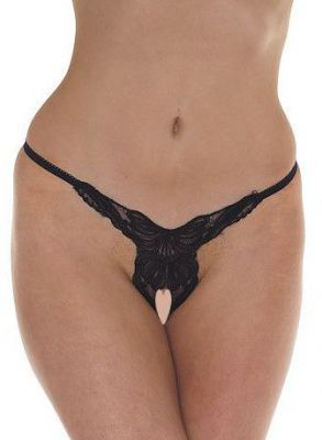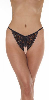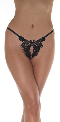 Damen-G-String im Schritt offen aus schwarzer Spitze