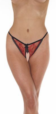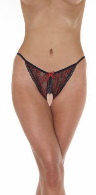 Im Schritt geteilter Damen-Slip schwarz/rot