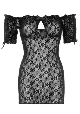 Powerwetlook-Minikleid mit Spitzenbesatz und Strapshaltern