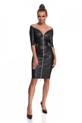Kurzes Lack Kleid mit dekorativer Schulterpartie