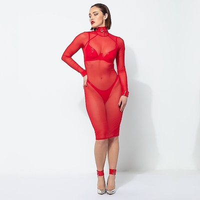 Powerwetlook Kleid mit doppelter Schnürung vorne