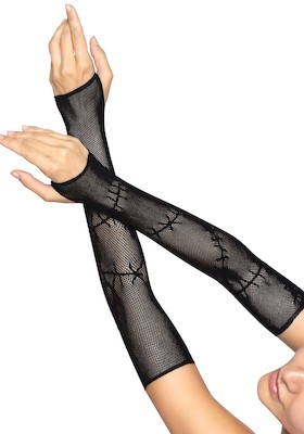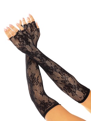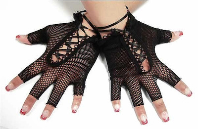Kurze Handstulpen aus Feinnetz und lila silber Lack