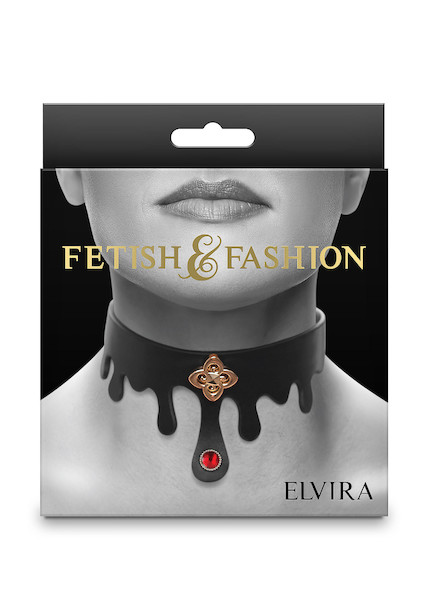 Das Elvira-Halsband von Fetish & Fashion ist der perfekte Körperschmuck für sinnliche Bondage-Spiele. Elvira passt für einen Halsumfang von 11.5 bis 17.5 Zoll und ist mit einem Rubinjuwel und einem mit Nieten besetzten Goldanhänger geschmückt. Dieses exquisite Halsband verfügt über einen verstellbaren Schnallenverschluss und besteht aus geschmeidigem Kunstleder und nickelfreien Beschlägen. Elvira bleibt bei längerem Gebrauch mit Sicherheit bequem.