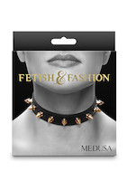 Das Medusa-Halsband von Fetish & Fashion ist ideal für Doms und Subs. Medusa passt für einen Halsumfang von 11.5 bis 17.5 Zoll und verfügt über nietenbesetzte Metallspikes und einen verstellbaren Schnallenverschluss für ein gefährlich sexy Erlebnis. Medusa besteht aus luxuriös weichem Kunstleder und nickelfreier Hardware und bleibt auch bei längerem Gebrauch bequem.