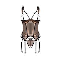 Das Material fühlt sich glatt und leicht an und liegt angenehm auf der Haut. Das transparente Mesh sorgt für einen sinnlichen Effekt und zeigt genau so viel, dass Spannung entsteht. Die Rückseite wird wie ein traditionelles Korsett geschlossen und bietet einen sicheren Halt bei jeder Bewegung.