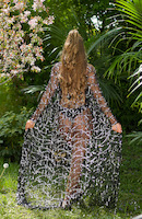 Bodenlanges durchscheinendes Negligee mit silbernen Pailetten.