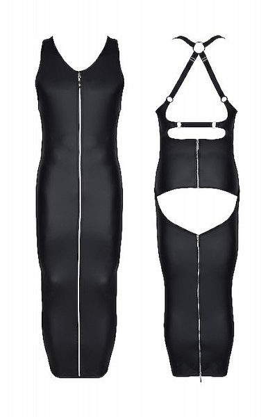 Ein phänomenal schönes und sexy langes Kleid. Es besteht vollständig aus einem angenehm anzufassenden und sehr flexiblen Wetlook 360°, dank dem es sich perfekt an den Körper anpasst und jedes Detail und die Silhouettenlinie betont. Vorne silberner Reißverschluss mit Zierreißverschluss, von unten und oben zu öffnen. Hinten noch 2 silberne Reißverschlüsse mit Zierreißverschluss. Reißverschlüsse hinten und vorne können auf verschiedene Arten geöffnet werden. Dadurch haben Sie Zugriff auf verschiedene Körperteile, die unter dem Kleid verborgen sind.