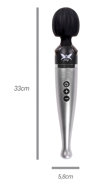 Wiederaufladbarer Massagestab, 5 Vibrationsmodi und 5 Geschwindigkeiten. Sehr kraftvolle Vibration mit12.000 RPM. Der flexible Kopf kommt problemlos an jede Stelle Ihres Körpers. USB-Kabel liegt bei. Gesamtlänge 32,5 cm, Ø max 5,7 cm, Gewicht: 831g, Farbe: schwarz-silber