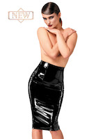 Material: Der Rock aus glänzendem, schwarzem PVC bietet ein hochglänzendes Finish, das jeden Look sofort aufwertet. Der strukturierte und dennoch flexible Stoff schmiegt sich geschmeidig an den Körper und zaubert eine makellose, figurbetonte Silhouette.