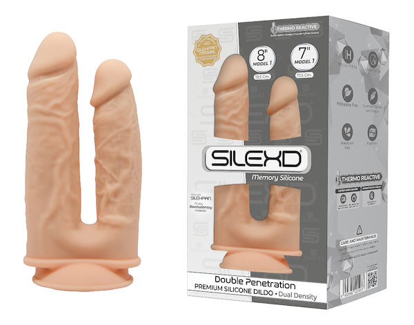 Der Double Penetrator aus superweiches Premium-Silikon mit SILEXPAN?-Füllung für maximales Gefühl, Dichte und Flexibilität. Das Thermoreaktive Material reagiert auf Temperaturen, lege ihn warmes Wasser, dadurch wird er weicher - legst du ihn in den Kühlschrank, wird er entsprechend härter. Durch einen besonders starken Saugfuß kann der Dildo an glatten Oberflächen befestigt werden. Gesamtlänge: ca. 17,5-19,5cm, Ø 3,5-7,5cm, Gewicht: 500g