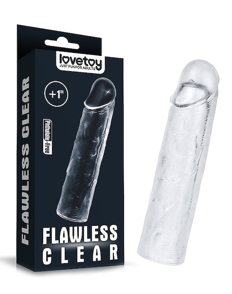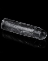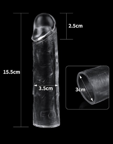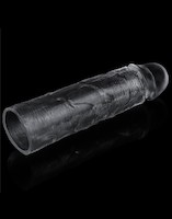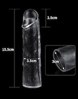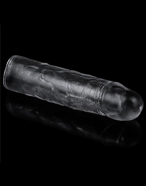 Dies ist eine transparente Hülle, die eine Verlängerung von 2.5 cm bietet. Die Hülle ist elastisch und passt sich verschiedenen Penisformen und -größen an.
