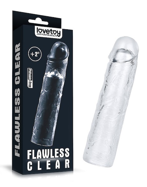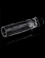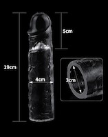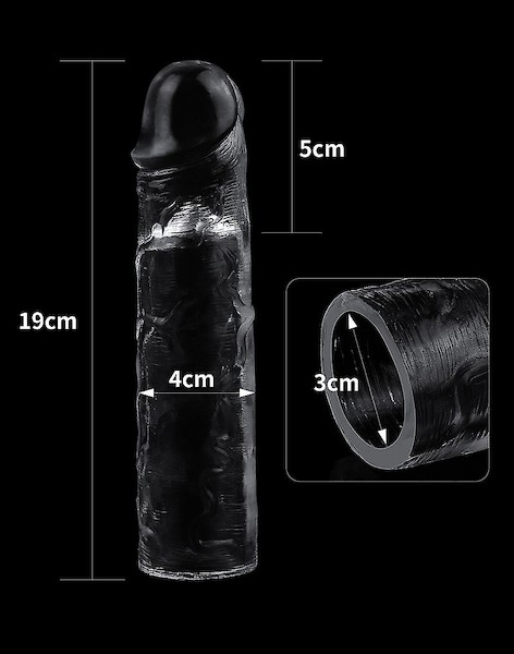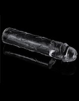 Dies ist eine transparente Hülle, die eine Verlängerung von 5 cm bietet. Die Hülle ist elastisch und passt sich verschiedenen Penisformen und -größen an.