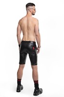 Low-Waist-Shorts aus schwarzem, elastischem Wetlook-Material. Die etwas lockerere Passform an Hüfte und Oberschenkeln sorgt für eine entspannte und dennoch stylische Silhouette. Das Design verfügt über vier praktische Taschen – zwei vorne und zwei hinten – für ausreichend Platz für Handy, Geldbörse und andere Kleinigkeiten. Ein besonderes Detail: Die Reißverschlüsse sind mit dem RFP-Logo graviert.