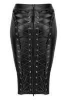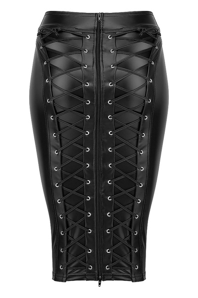 Eng anliegender Rock aus Powerwetlook mit langem Reißverschluss an der Seite. Perfekte Länge für einen aufregenden Look.