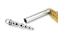 Extra schlagkräftige Metallpeitsche mit zahlreichen Metallketten als Peitschenstränge. Vorsicht: Wenn Sie einen Sklaven damit auspeitschen, dann tut das richtig weh! Im Griff ist ein herausschraubbarer Plug enthalten.