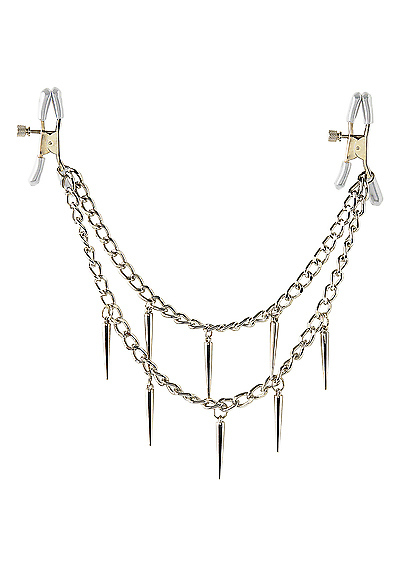 Verstellbare Nippelklammern mit Doppelkette und Schmuck-Spikes.