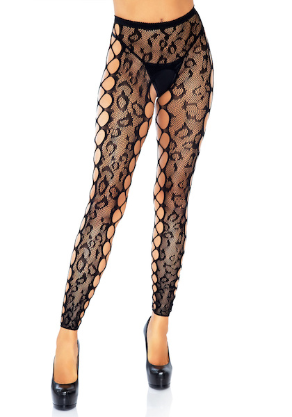 Ouvert-Strumpfhose aus Netz in Leoparden-Optik.