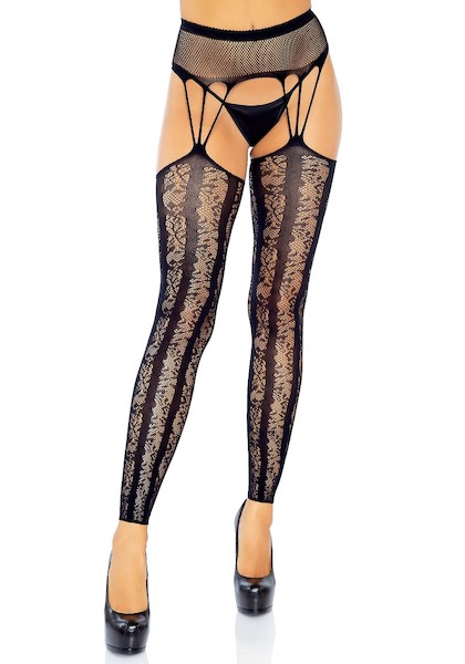 Gestreifte Spitzenstrümpfe mit Netz-Strumpfgürtel ohne Füße.