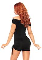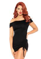 Dieses bezaubernde 'Kleine Schwarze' besitzt schulterfreie Ärmel und eine entzückende Kordelraffung am Bein. Der weiche, fließende Stoff ist hoch elastisch und schmiegt sich sanft an den Körper.
