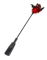 Diese Duo-Peitsche hat eine weiche und eine harte Seite. Während die schwarzen Federn für ein weiches, neckisches Gefühl sorgen, sorgt die Peitsche für eine feste Spanking-Session.