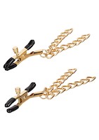 Ride 'em Premium Denim Collection Nipple Clamps, bieten verstellbaren Druck und weiche Polster für verbesserte Empfindlichkeit. Doppelte Ketten erzeugen subtile Zugsensationen für erhöhte Erregung. Hergestellt mit nickelfreien Materialien für Sicherheit. Entdecken Sie neue Levels der Aufregung mit diesem stilvollen und sinnlichen Accessoire.
