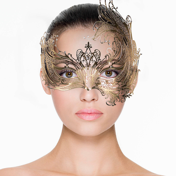 Diese durchbrochene venezianische Maske von EasyToys ist ein ideales Accessoire zu einem attraktiven Kleid oder einem sexy Dessous-Set. Sie ist in edlem Gold gehalten und besticht durch ihr ansprechendes, durchbrochenes Design. Die Maske bedeckt den Bereich rund um die Augen, einen Teil der linken Wange und die linke Hälfte Ihrer Stirn. An den Enden der Maske befinden sich Strasssteinchen, die der Maske einen anmutigen Touch verleihen. Die Maske ist an der Rückseite mit zwei schwarzen Bändchen zu binden. Diese Maske ist sowohl für einen Maskenball als auch für einen prickelnden Abend im intimen Rahmen mit Ihrem/r Partner/in eine perfekte Wahl!