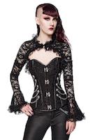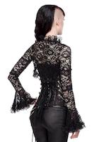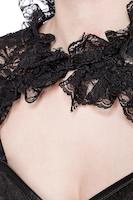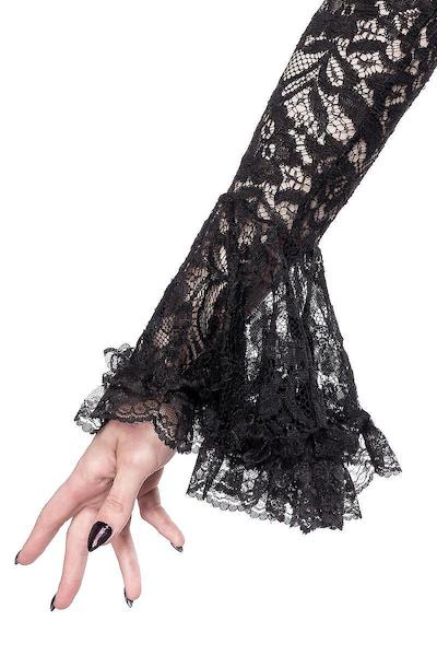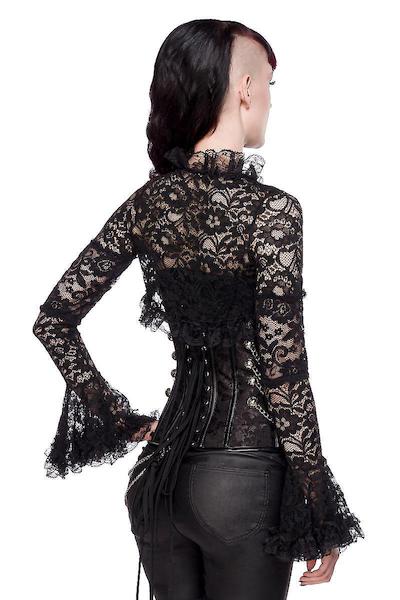transparenter Spitzenbolero Trompetenärmelchen mit Rüschensaum wird am Hals mit einem Knopf geschlossen