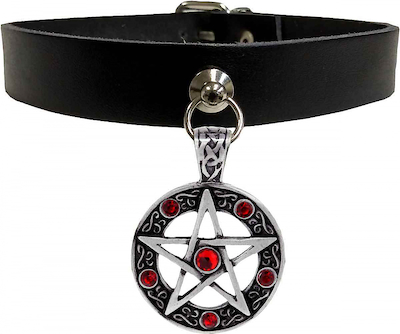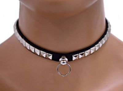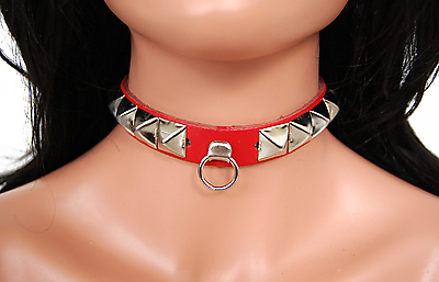 Lederhalsband / Pyramidennieten & Ring (Rot)