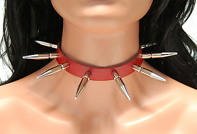 Lederhalsband / 4,5 cm Killernieten (Rot)
